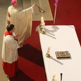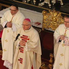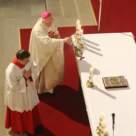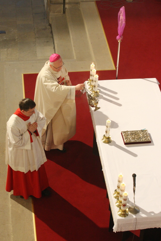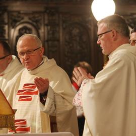 Zelený čtvrtek, mše svatá se symbolickým mytím nohou učedníkům, svatým přijímáním pod obojí způsobou a vzpomínkou na Ježíšovu modlitbu v Getsemanské zahradě, hlavní celebrant litoměřický biskup Mons. Jan Baxant, 28. března 2013, katedrála sv. Štěpána, Litoměřice