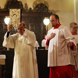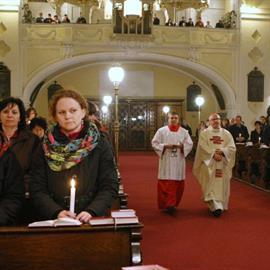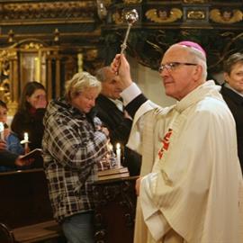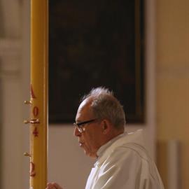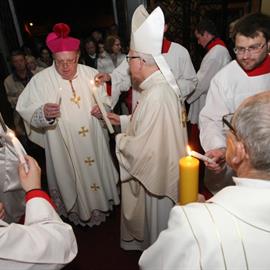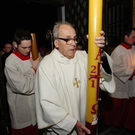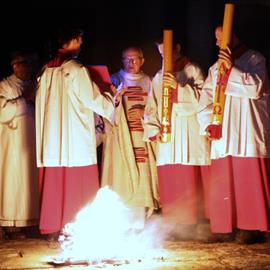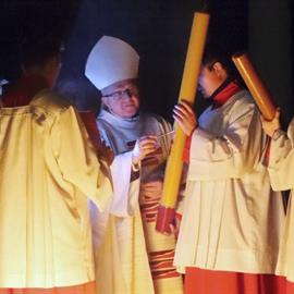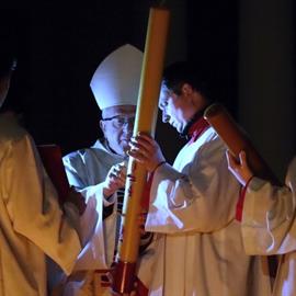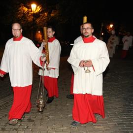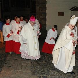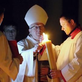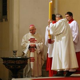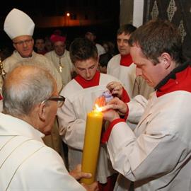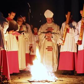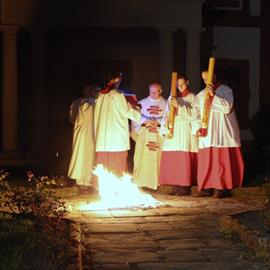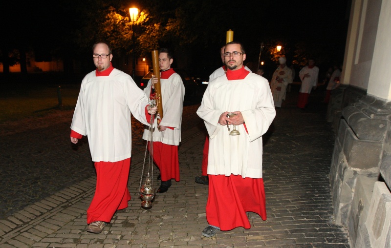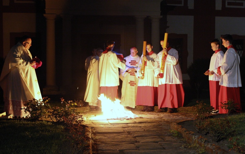 Velikonoční vigilie s litoměřickým biskupem Mons. Janem Baxantem, Bílá sobota, 19. dubna 2014, nádvoří biskupské rezidence, katedrála sv. Štěpána, Litoměřice
