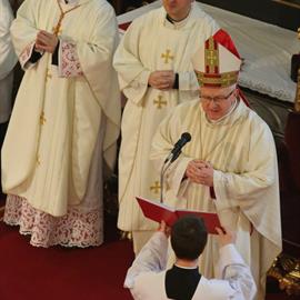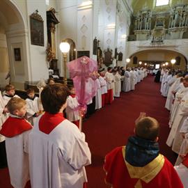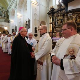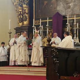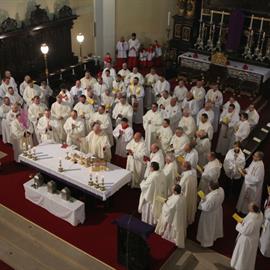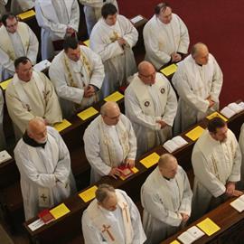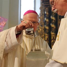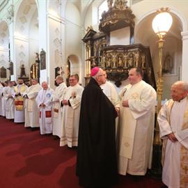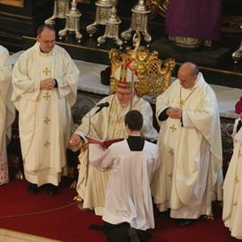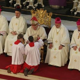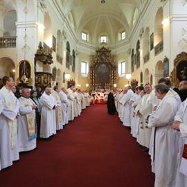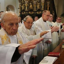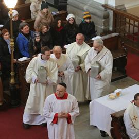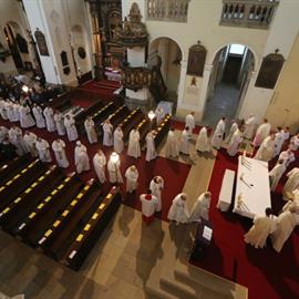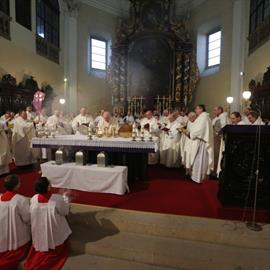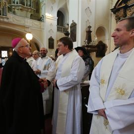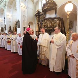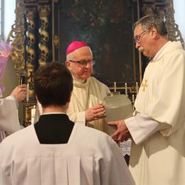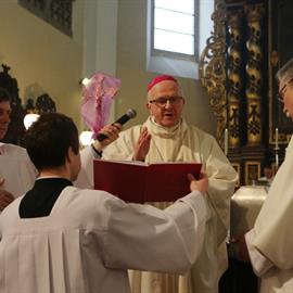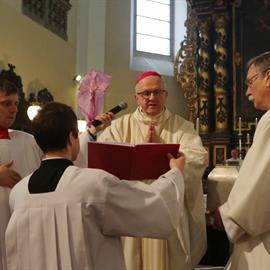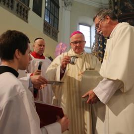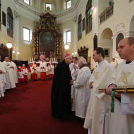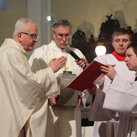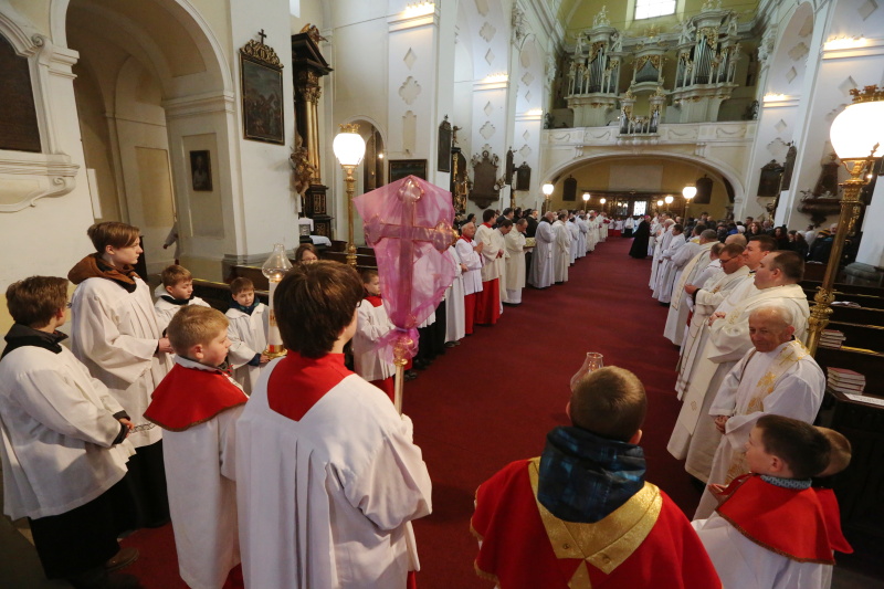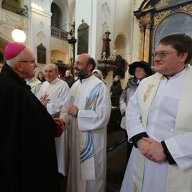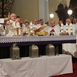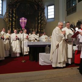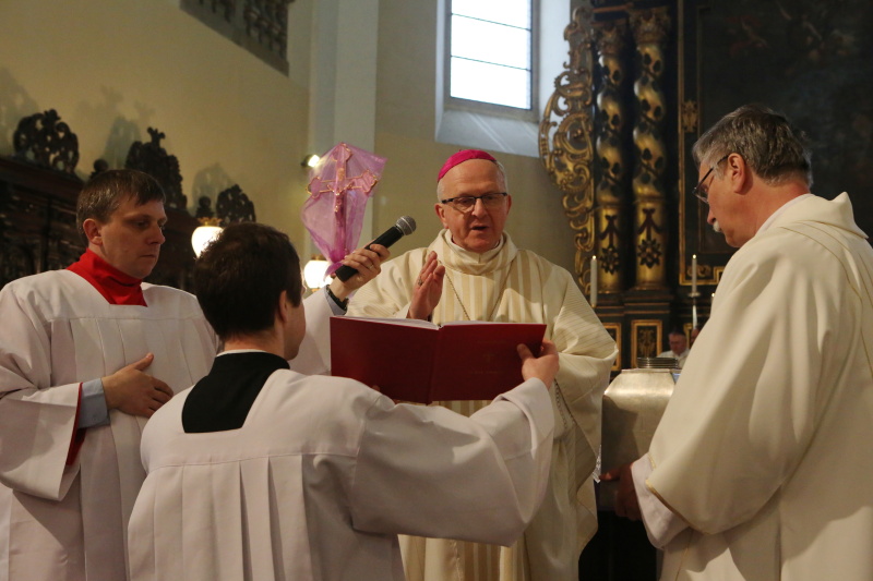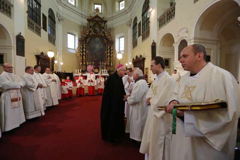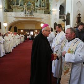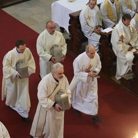 Missa chrismatis s diecézním biskupem Janem Baxantem (slavnostní mše svatá s obnovením kněžských závazků a žehnáním posvátných olejů), Zelený čtvrtek, 2. duben 2015, katedrála sv. Štěpána, Litoměřice