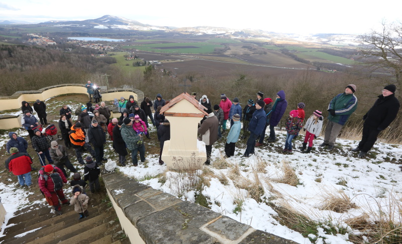 Velký pátek, křížová cesta, pobožnost s litoměřickým biskupem Mons. Janem Baxantem, 3. dubna 2015, barokní areál Kalvárie, Ostré u Ústěka