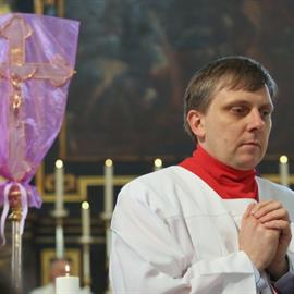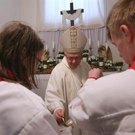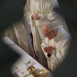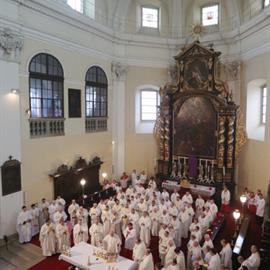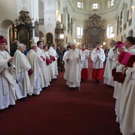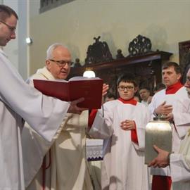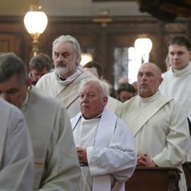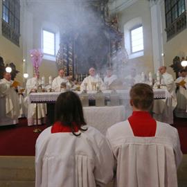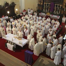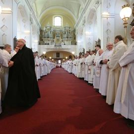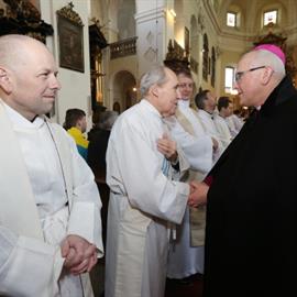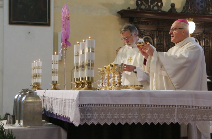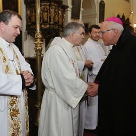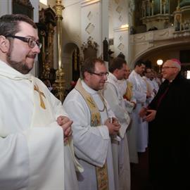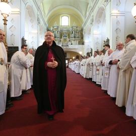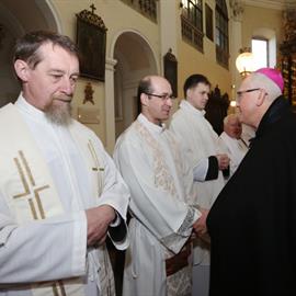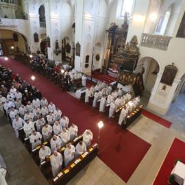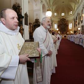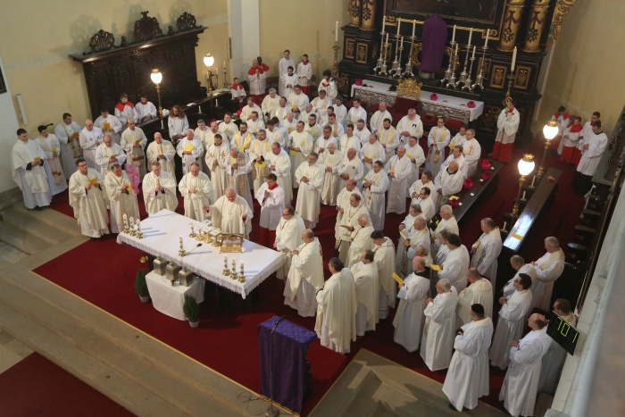Missa chrismatis s biskupem Janem Baxantem a kněžími a jáhny působícími v litoměřické diecézi (slavnostní mše svatá s obnovením kněžských závazků a žehnáním posvátných olejů), Zelený čtvrtek, 24. března 2016, katedrála sv. Štěpána, Litoměřice
