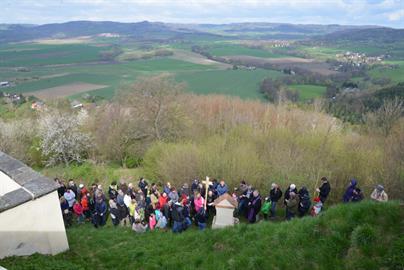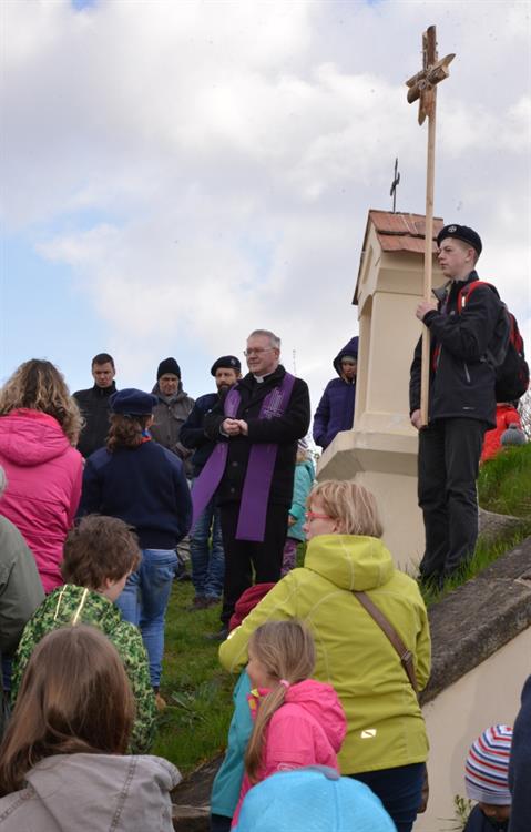 Velký pátek, křížová cesta, pobožnost s generálním vikářem Mons. Martinem Davídkem, 14. dubna 2017, barokní areál Kalvárie, Ostré u Úštěka