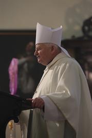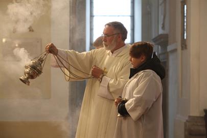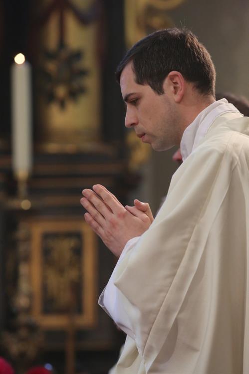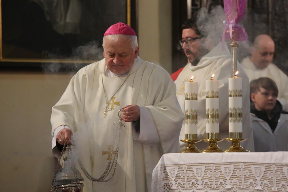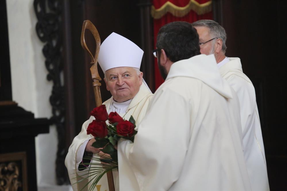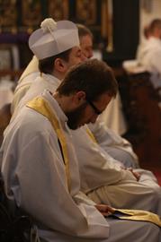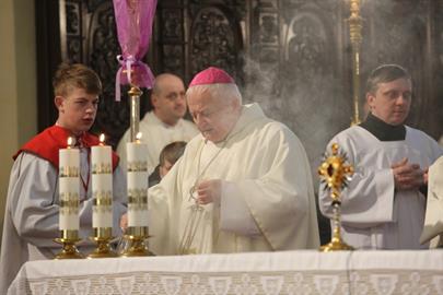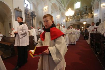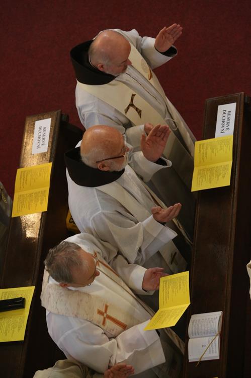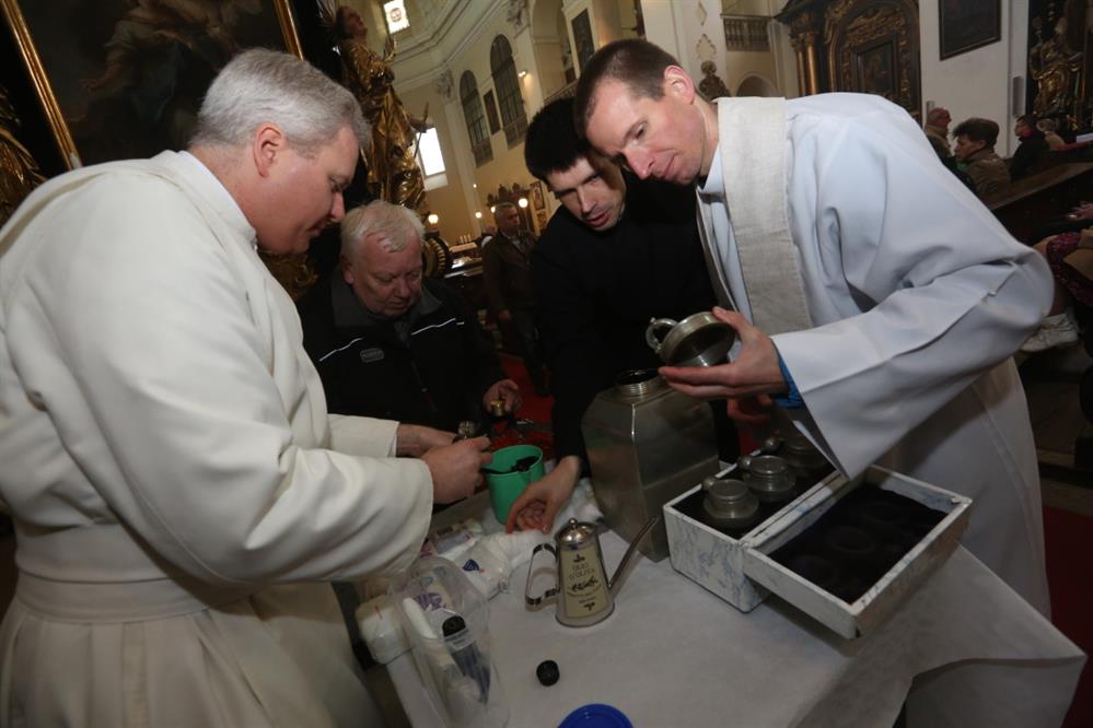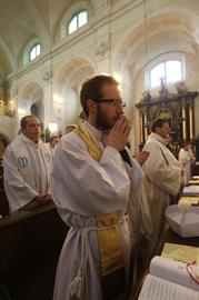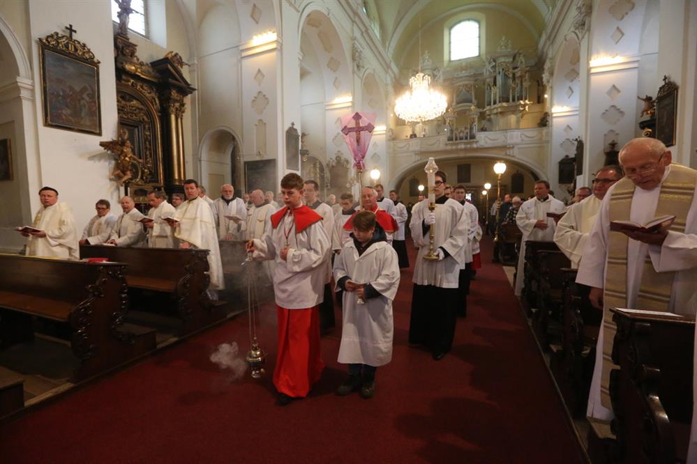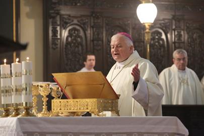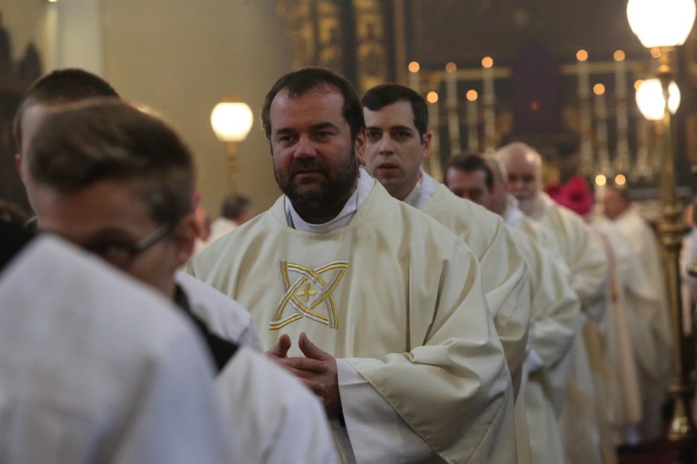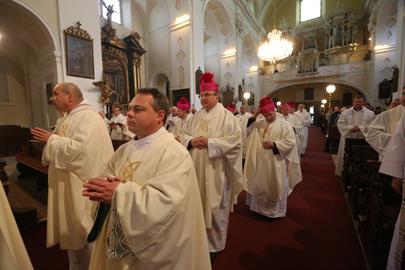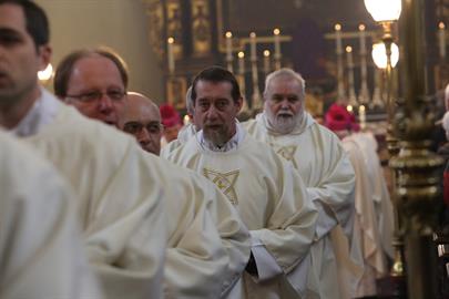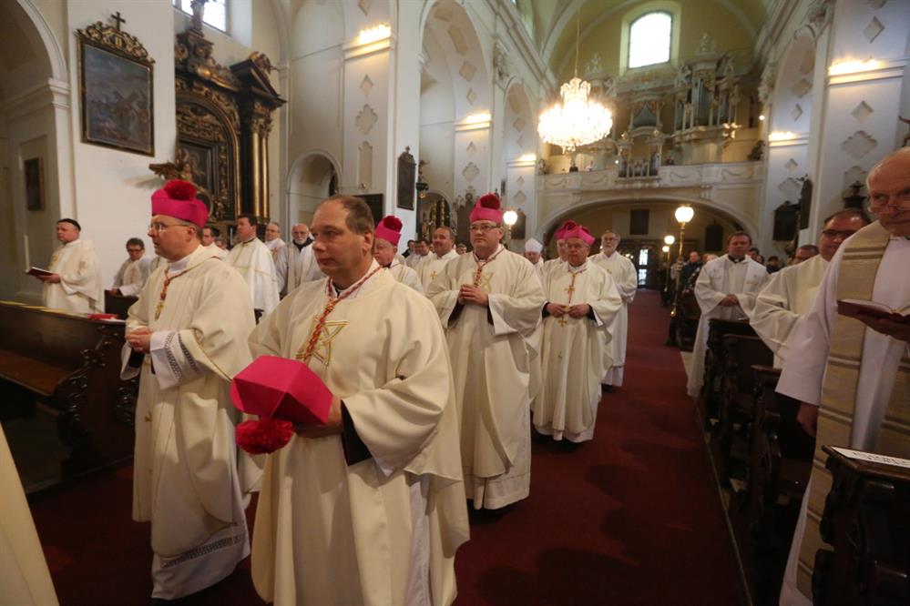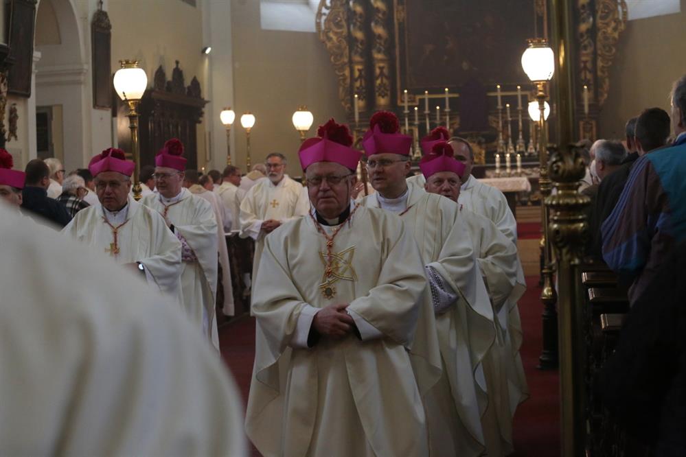 Missa chrismatis s emeritním světícím biskupem pražským Mons. Karlem Herbstem SDB, generálním vikářem litoměřické diecéze Mons. Martinem Davídkem, proboštem litoměřické katedrální kapituly P. Jiřím Hladíkem O.Cr. a kněžími litoměřické diecéze (slavnostní mše svatá s obnovením kněžských závazků a žehnáním posvátných olejů), Zelený čtvrtek, 13. duben 2017, katedrála sv. Štěpána, Litoměřice