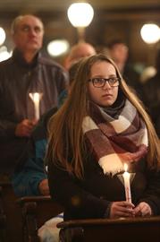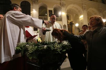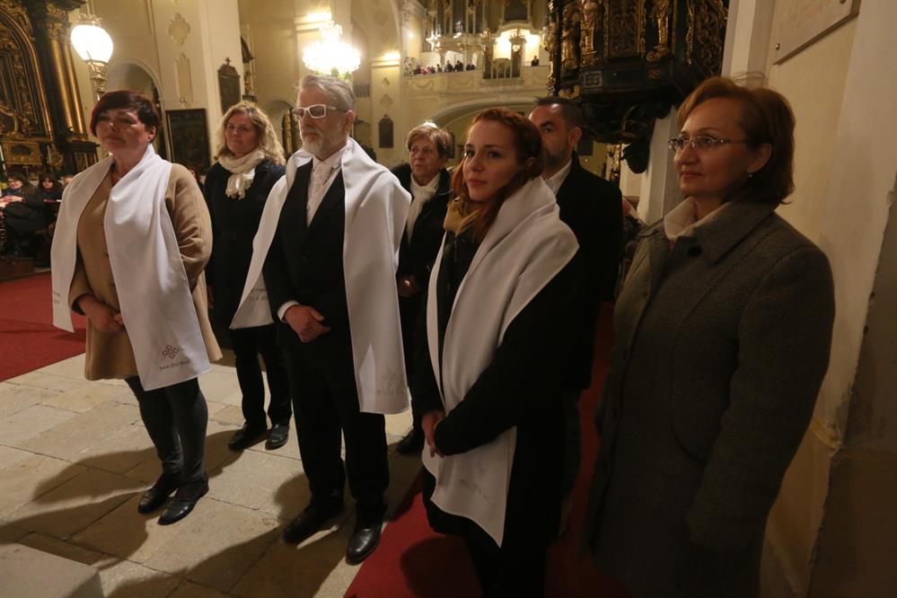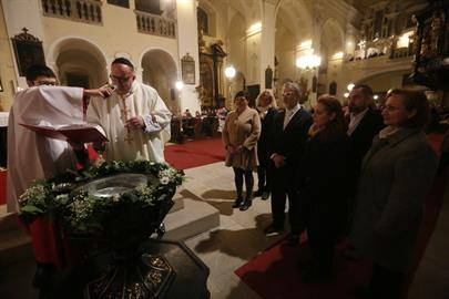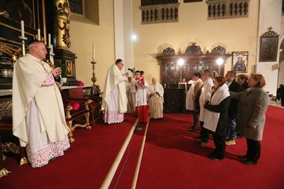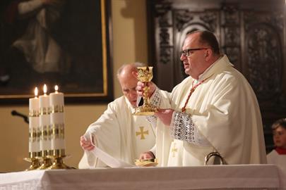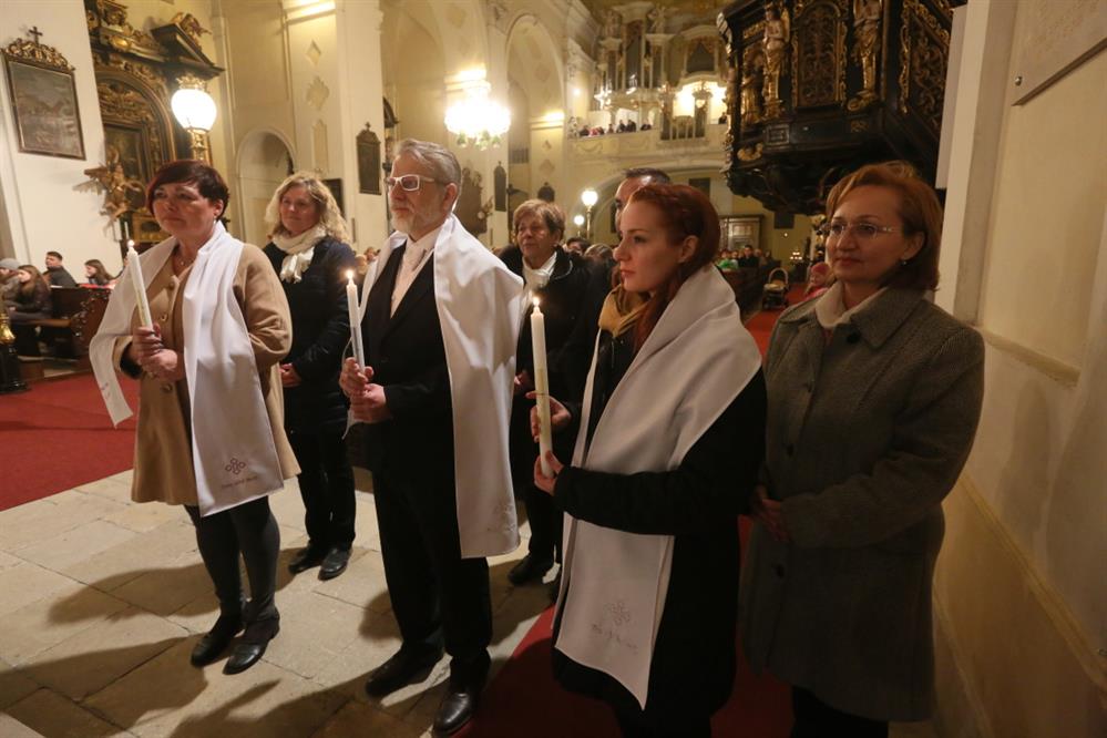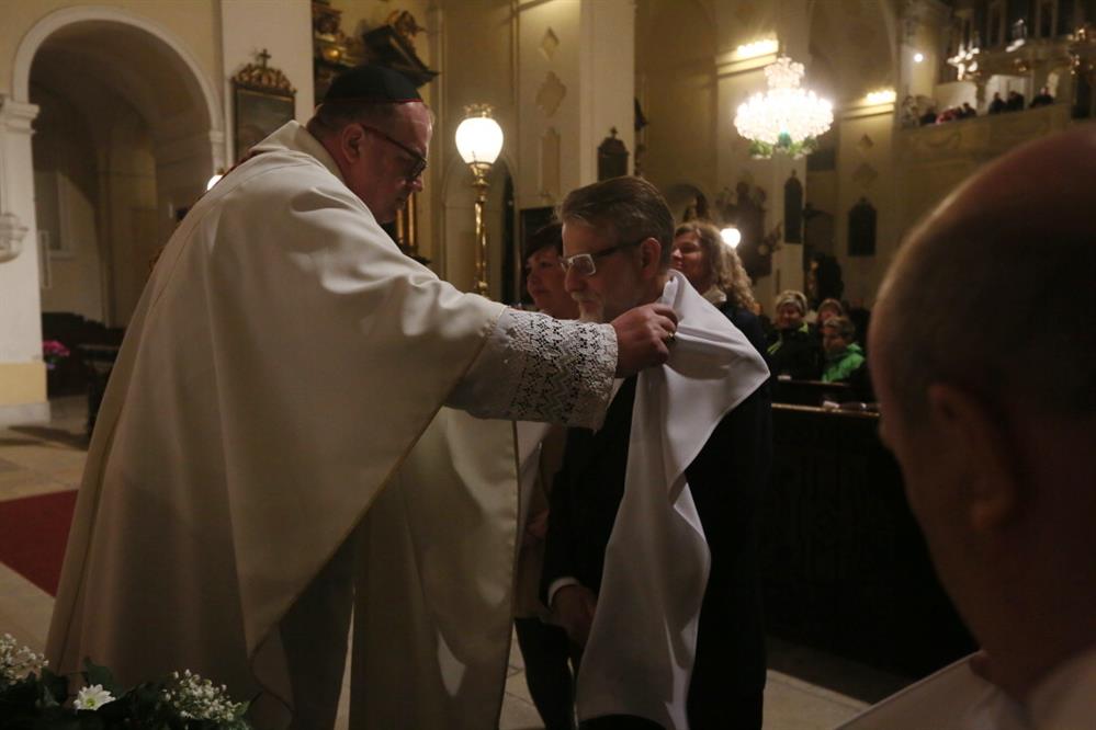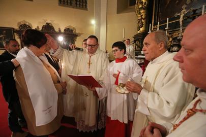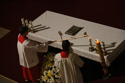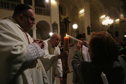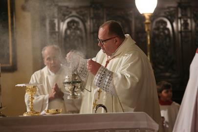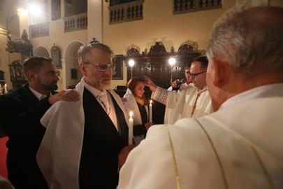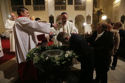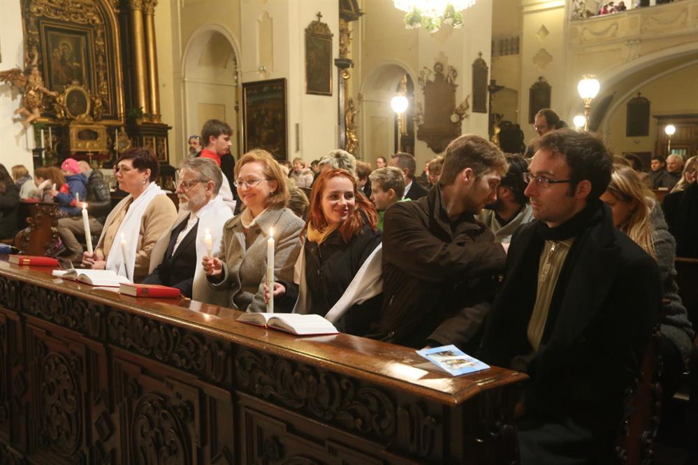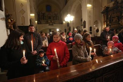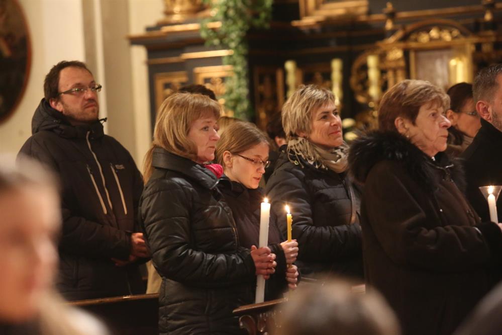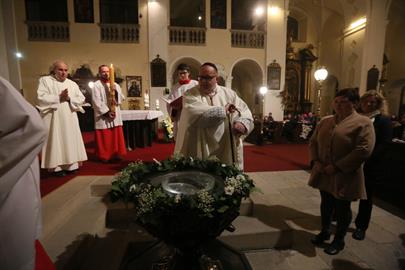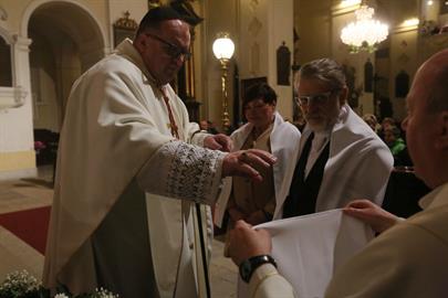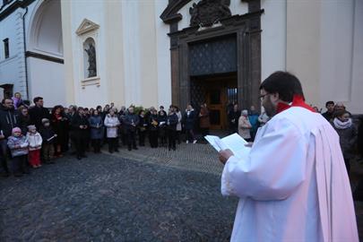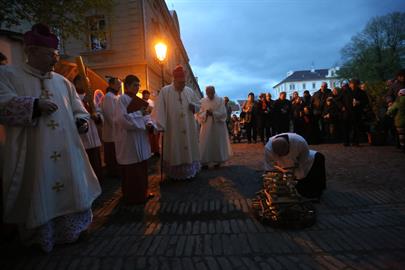 Bílá sobota, velikonoční vigilie (obřady velikonoční vigilie – slavnost světla, bohoslužba slova, vody a oběti) s proboštem litoměřické katedrální kapituly P. Jiřím Hladíkem O.Cr., generálním vikářem Mons. Martinem Davídkem a kapitulním kanovníkem a děkanem litoměřické městské farnosti R.D. Józefem Szeligou, 15. dubna 2017, katedrála sv. Štěpána, Litoměřice