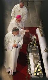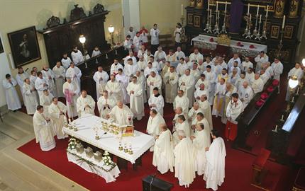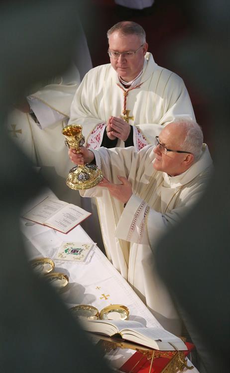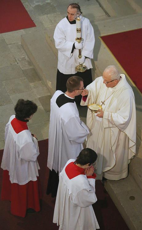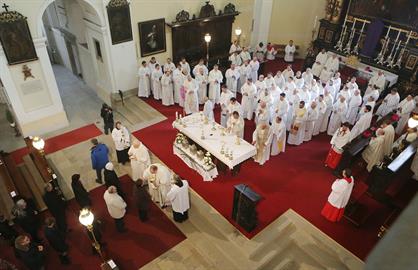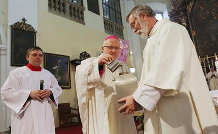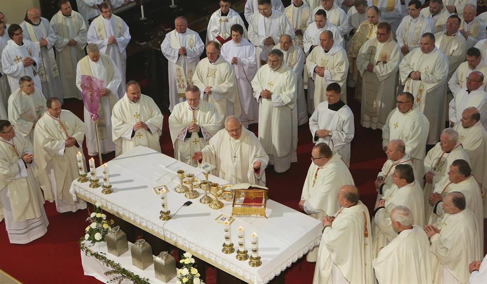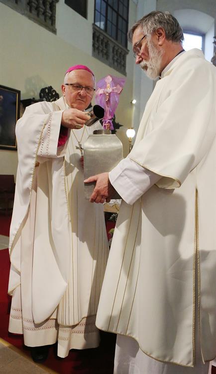Missa chrismatis. Během slavnostní mše svaté, spojené se svěcením nových olejů,