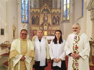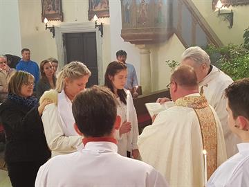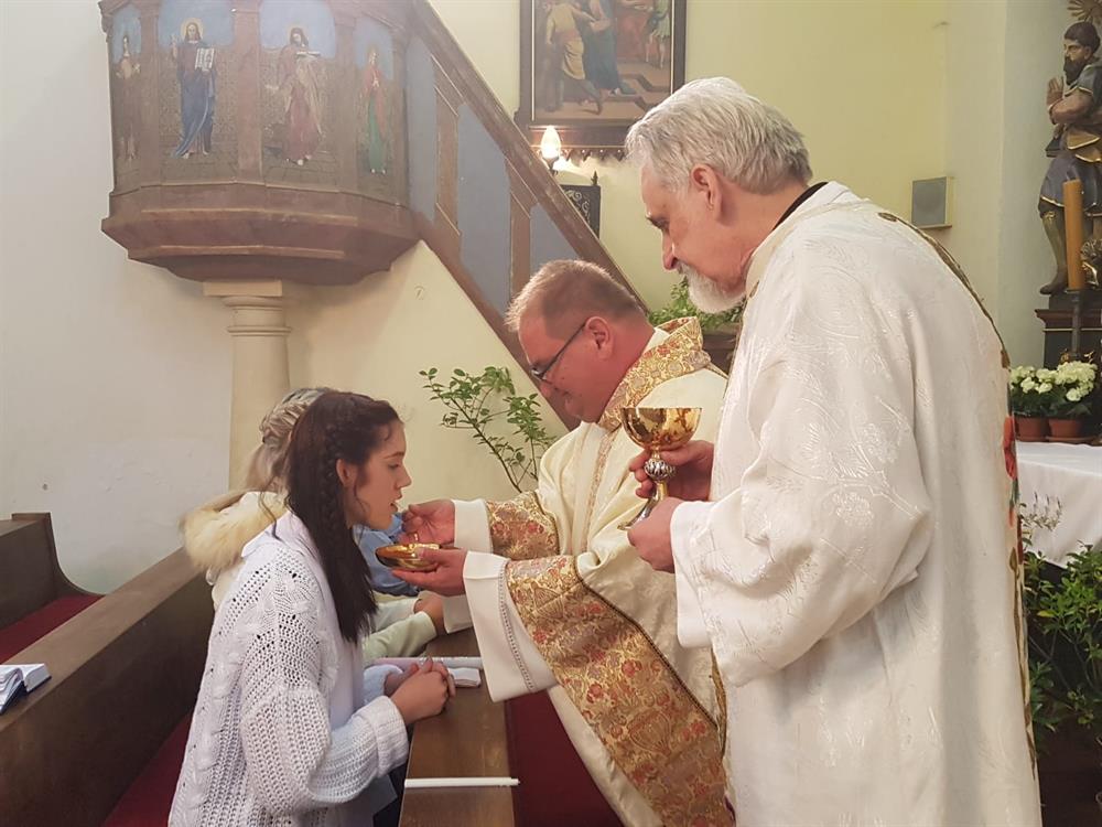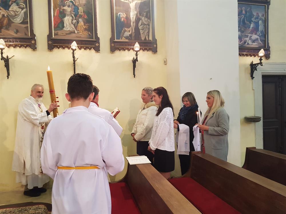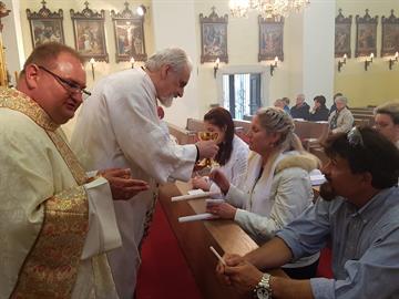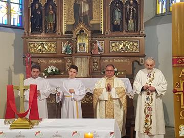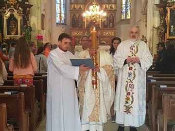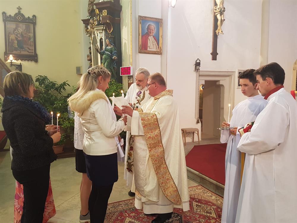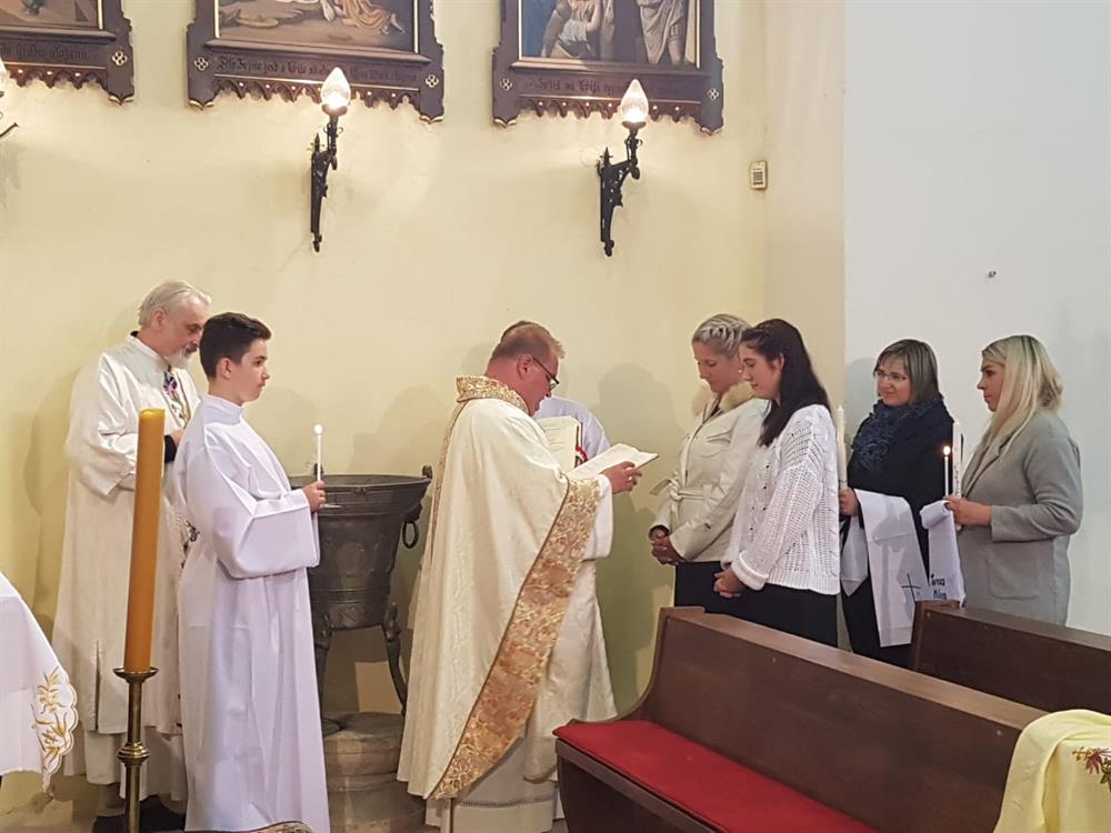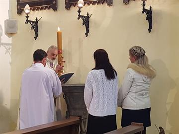 obřady poprvé sloužil nový farář R.D. Tomasz Dziedzic, který při nich křtil