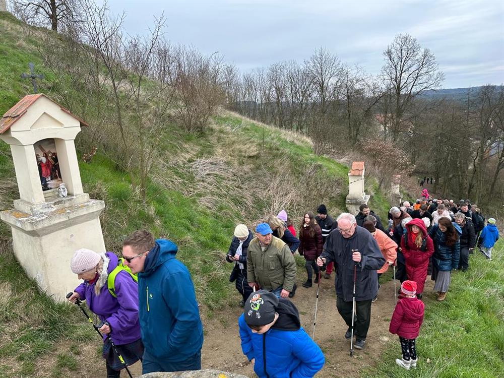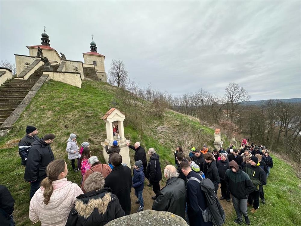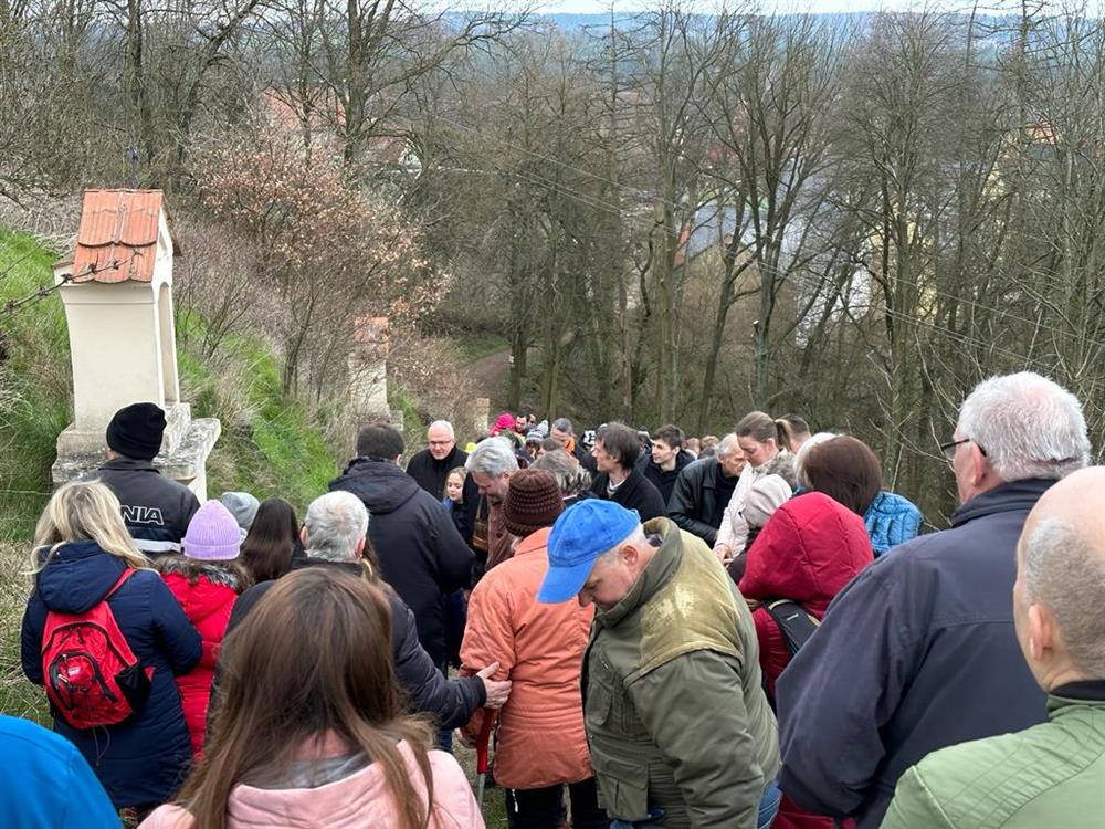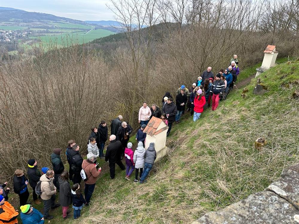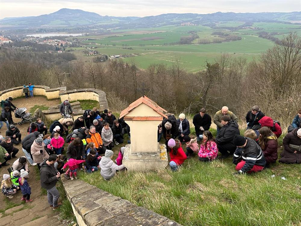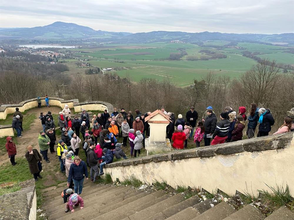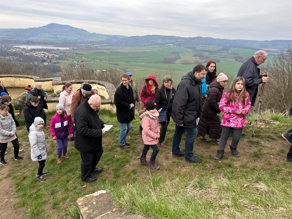 Velkopáteční křížová cesta s litoměřickým biskupem na Ostrém u Úštěku