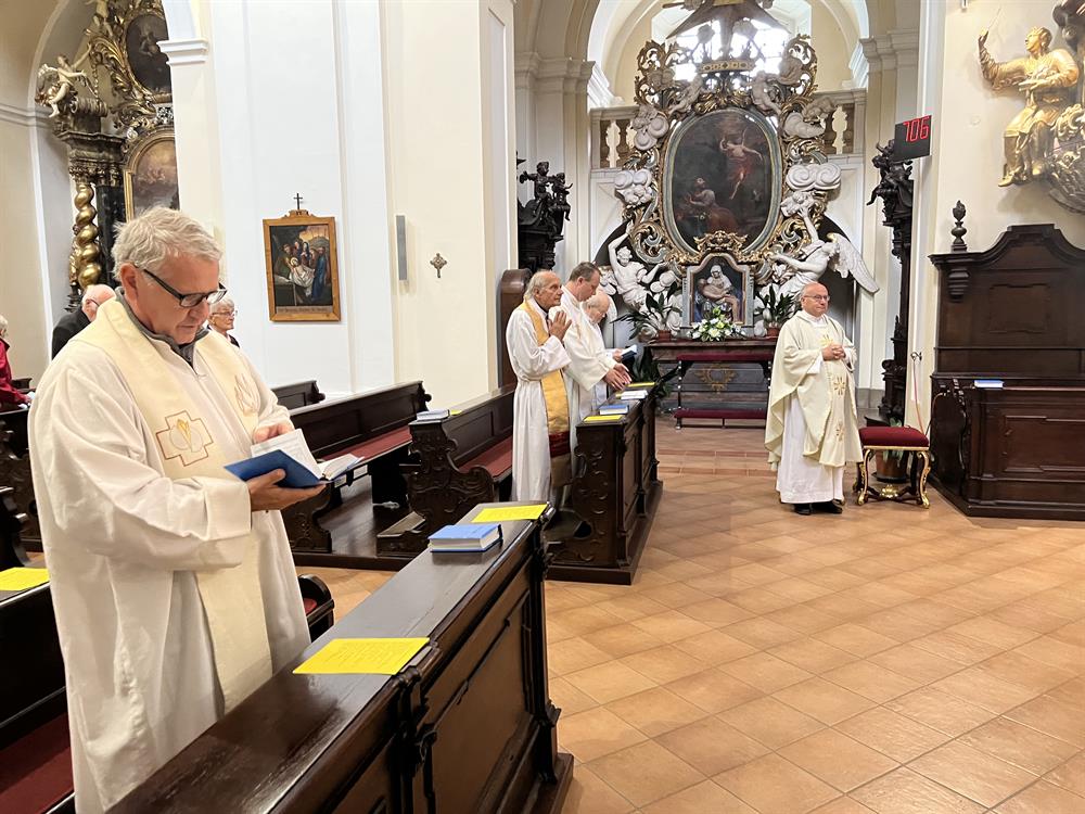 litoměřický biskup Mons. Jan Baxant. Po mši svaté se přítomní duchovní