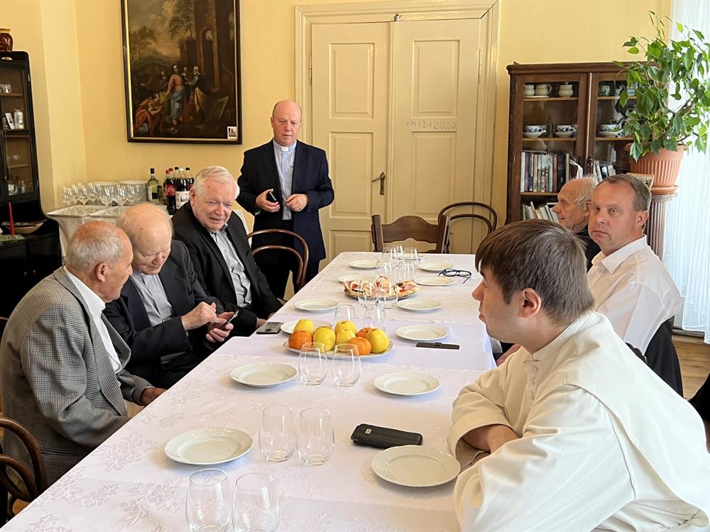 přítomní kanovníkovi a děkanu Józefu Szeligovi, který v těchto dnech slaví