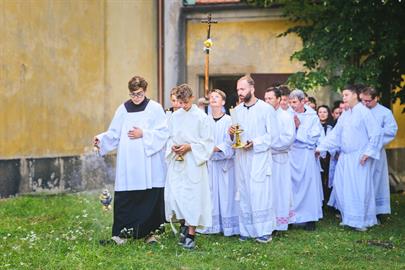Po mši svaté bylo na zahradě fary připraveno malé občerstvení pro všechny účastníky.