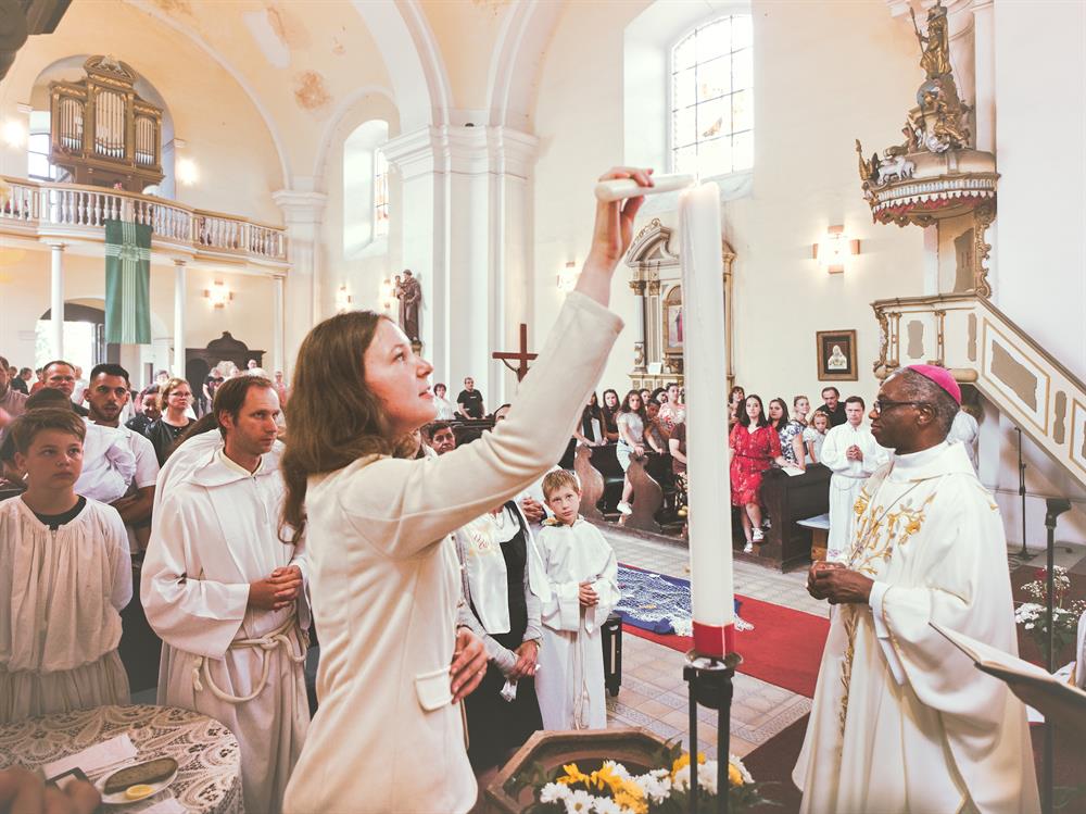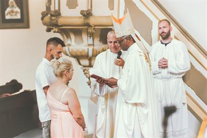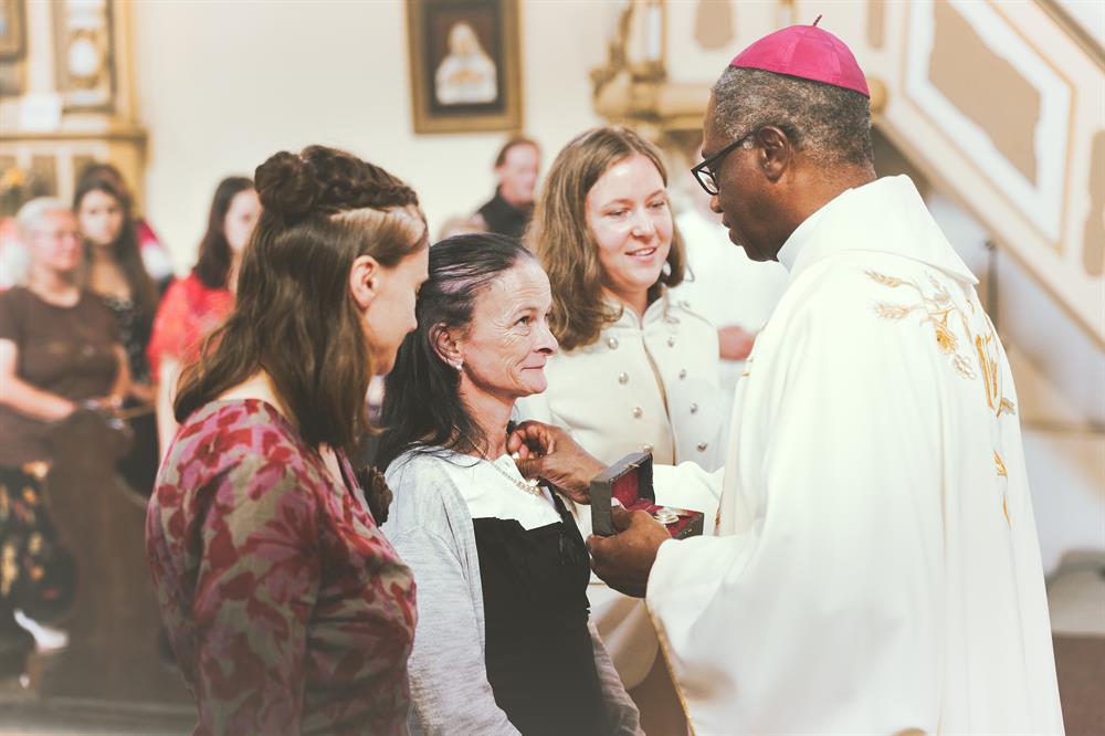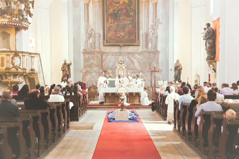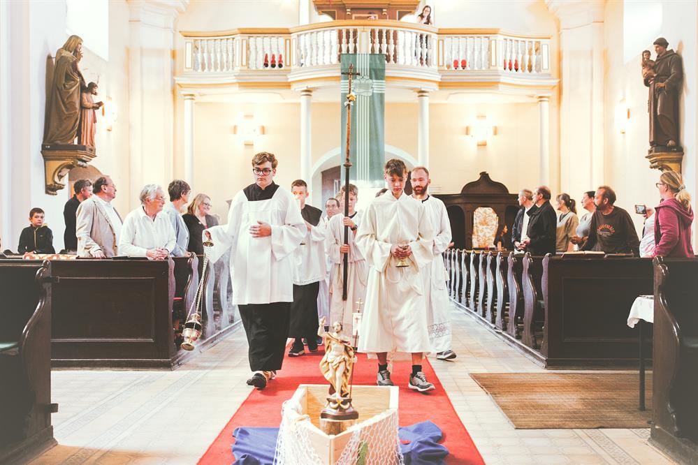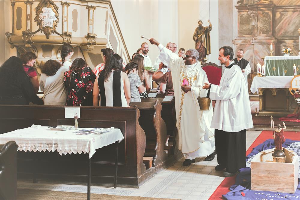 Během slavnostní mše sv. nuncius křtil, jedni manželé při ní obnovovali manželský slib (po období krize), a pak také vatikánský velvyslanec požehnal výroční magnetky a novou vitráž znázorňující Svatou rodinu.