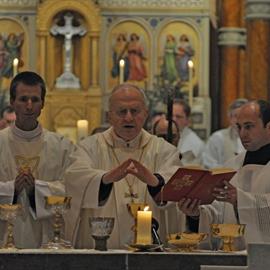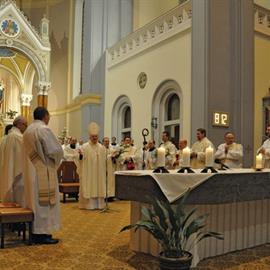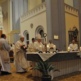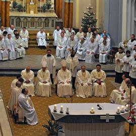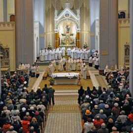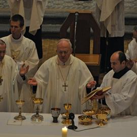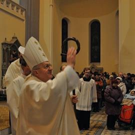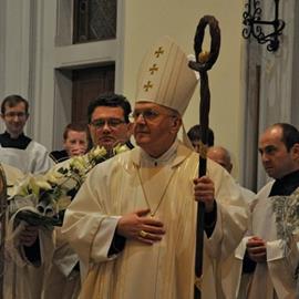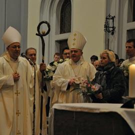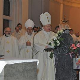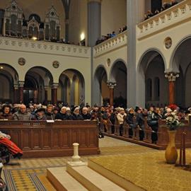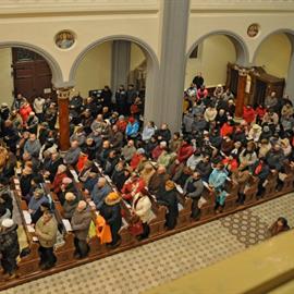 Mše sv. u příležitosti výročního dne zjevení Panny Marie. Za přítomnosti několika set poutníků celebroval litoměřický biskup Mons. Jan Baxant, který pronesl promluvu v českém jazyce, koncelebrovali zhořelecký biskup Mons. Wolfgang Ipolt, který pronesl německé kázání, a více než padesátka kněží z českých i moravských diecézí. Pátek 13. ledna 2012, bazilika Panny Marie Pomocnice křesťanů, Filipov.