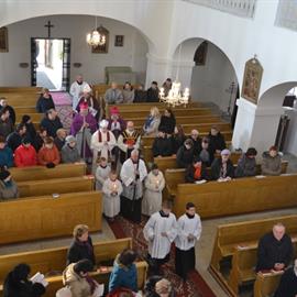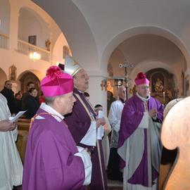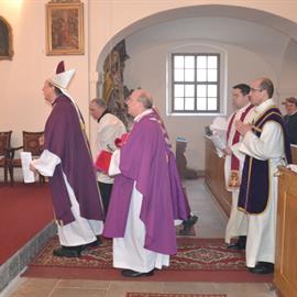 výroční vzpomínková mše svatá za zemřelého prof. Miroslava Zedníčka (19. února 2012), administrátora ŘKF Liběšice u Litoměřic; hlavním celebrantem mše svaté byl světící biskup českobudějovický Mons. Pavel Posád, 21. února 2015, kostel Nanebevzetí Panny Marie, Liběšice