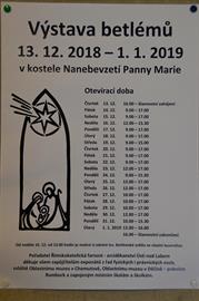 Ukončení výstavy bude na Nový rok v 16.00 hodin. Vstupné je dobrovolné.
