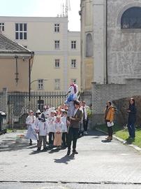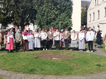 Vystoupení souborů z biskupského gymnázia na velikonočním jarmarku v Krupce