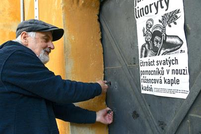 V Růžencové kapli za děkanským kostelem Povýšení sv. Kříže v Kadani je v těchto dnech k vidění výstava linorytů s názvem Čtrnáct svatých pomocníků v nouzi. Autorem výtvarných děl je jáhen Mgr. Jan Hrubý, který je vytvořil u příležitosti srpnového otevření obnoveného kostela u místního františkánského kláštera, zasvěceného těmto patronům. Výstavu je možné shlédnout v sobotu od 9:00 do 12:00 a v neděli od 9:30 do 12:30 hod. Mimo tuto dobu lze návštěvu domluvit také na telefonním čísle 474 344 463.