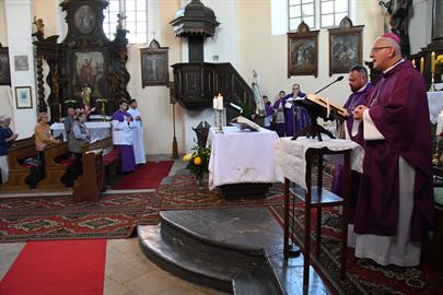 násilnou smrtí. Bohoslužbu celebroval litoměřický biskup Mons. Jan Baxant a kromě