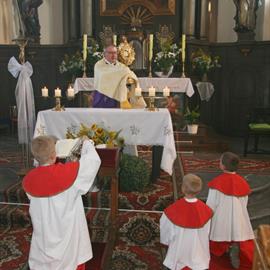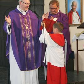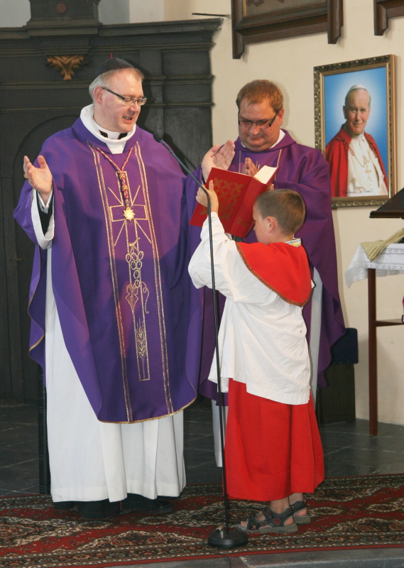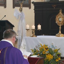 zádušní mše svatá za R.D. MUDr. Ladislava Kubíčka, eucharistická adorace, modlitba u pamětní desky, J.M. can. Martin Davídek, R.D. Mgr. Tomasz Dziedzic, 11. září 2012, kostel Narození Panny Marie, Třebenice
