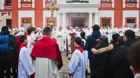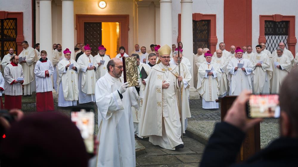 Nádvoří litoměřické biskupské rezidence zaplnily stovky lidí. Při zahájení Jubilejního roku 2025 se tu na svátek Svaté rodiny věřící s kněžími a jáhny shromáždili kolem biskupa Stanislava Přibyla. Po přečtení evangelního úryvku a papežské buly se vydali průvodem za zpěvu litanií do katedrály sv. Štěpána.