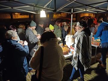 "Poutníci naděje" se pak při odchodu mohli občerstvit na cestu. Biskup je pozval "pod katedrální věž" na čaj, punč a svařené víno.