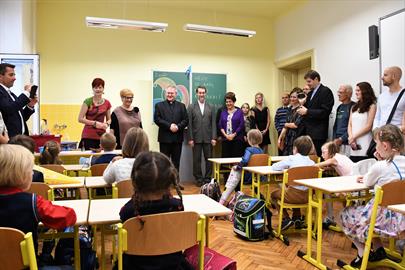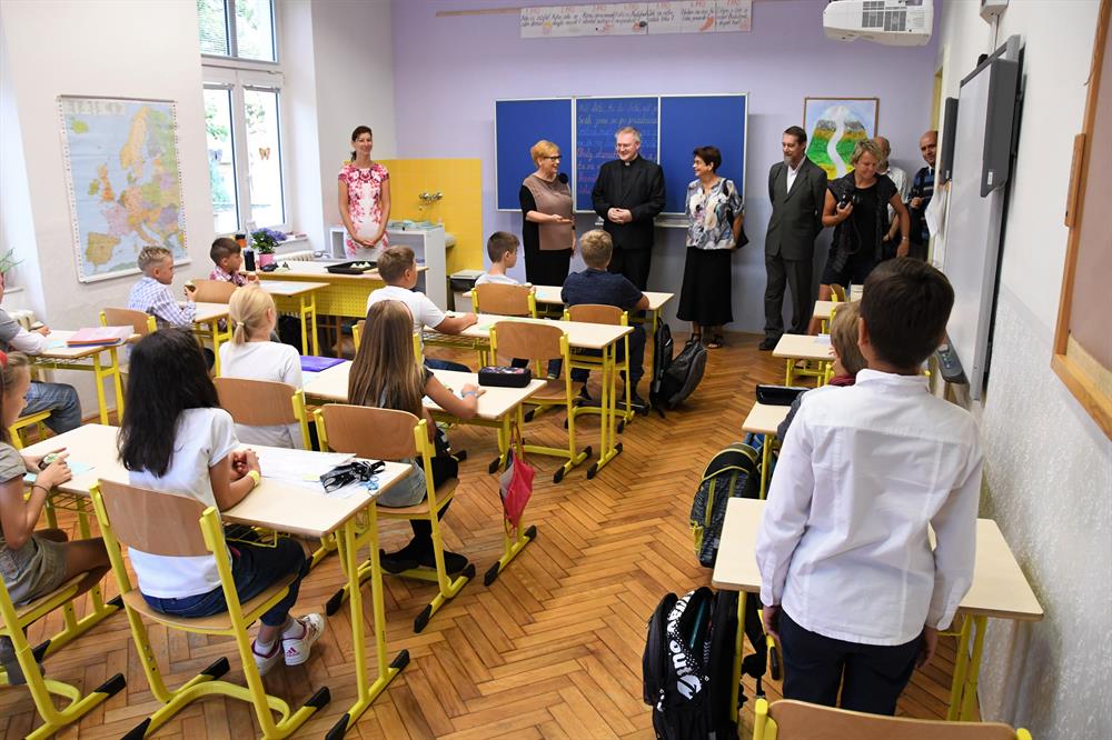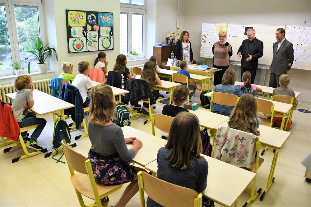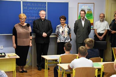 V pondělí 3. září začal v celé republice nový školní rok a ve všech školách se ráno odehrávalo jeho slavnostní zahájení. Stejně tomu bylo i v litoměřické diecézi, v jablonecké Základní škole Antonína Bratršovského, jejímž zřizovatelem je Biskupství litoměřické. Slavnostní zahájení si nenechal ujít generální vikář Mons. Martin Davídek, který společně s ředitelkou školy PhDr. Janinou Křimskou a členem školské rady P. Oldřichem Kolářem navštívili žáky prvních až čtvrtých tříd v Opletalově ulici. Poté se přesunuli do ulice Sasková, kde má škola hlavní sídlo a budovu zde navštěvují žáci druhého stupně. Během návštěvy si prohlédli nově zřízené a zrekonstruované prostory zázemí a sborovny pro učitelský sbor. Přítomným pedagogům gen. vikář také udělil požehnání s přáním úspěšného nového školního roku. Na stejnou návštěvu se vydal i litoměřický biskup Mons. Jan Baxant, který zavítal do Biskupského gymnázia ve Varnsdorfu. Zde se ve společenském sále setkal s ředitelem školy Ing. Jiřím Jakoubkem a učitelským sborem, kterému popřál dostatek sil při předávání znalostí mladé generaci, a také se žáky gymnázia, které pozdravil a popřál jim mnoho úspěchů při studiu.
