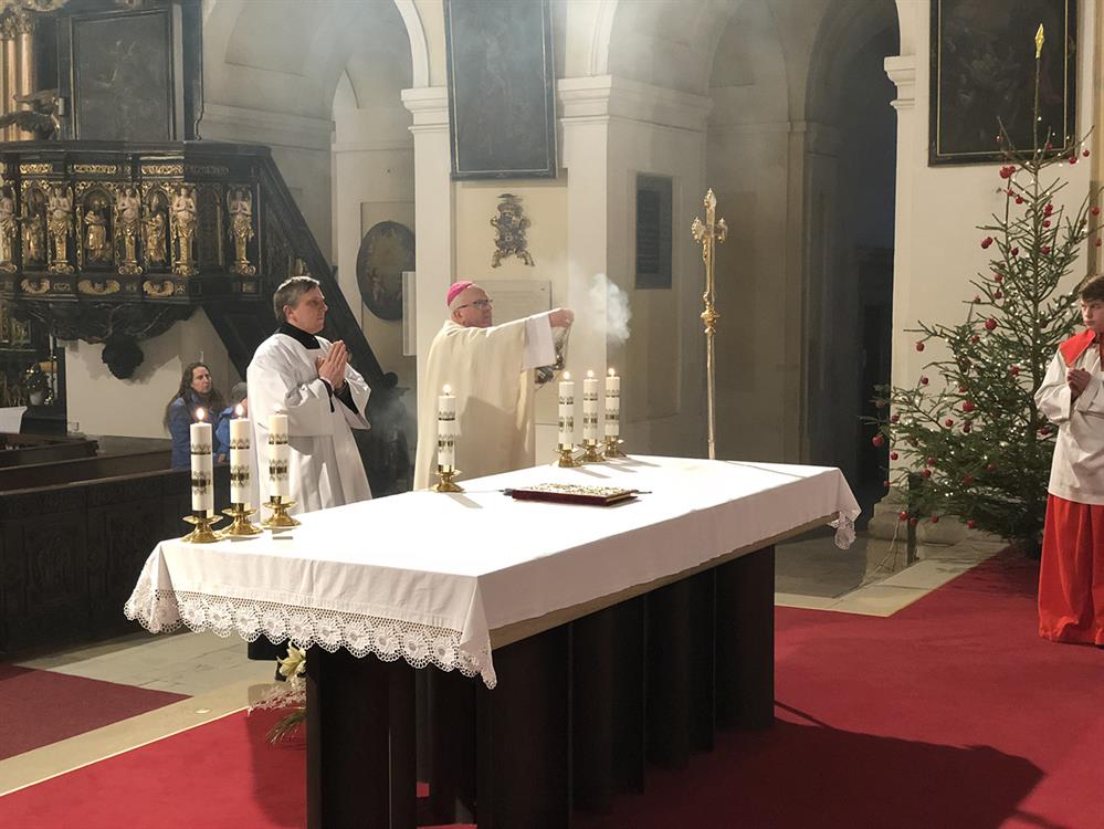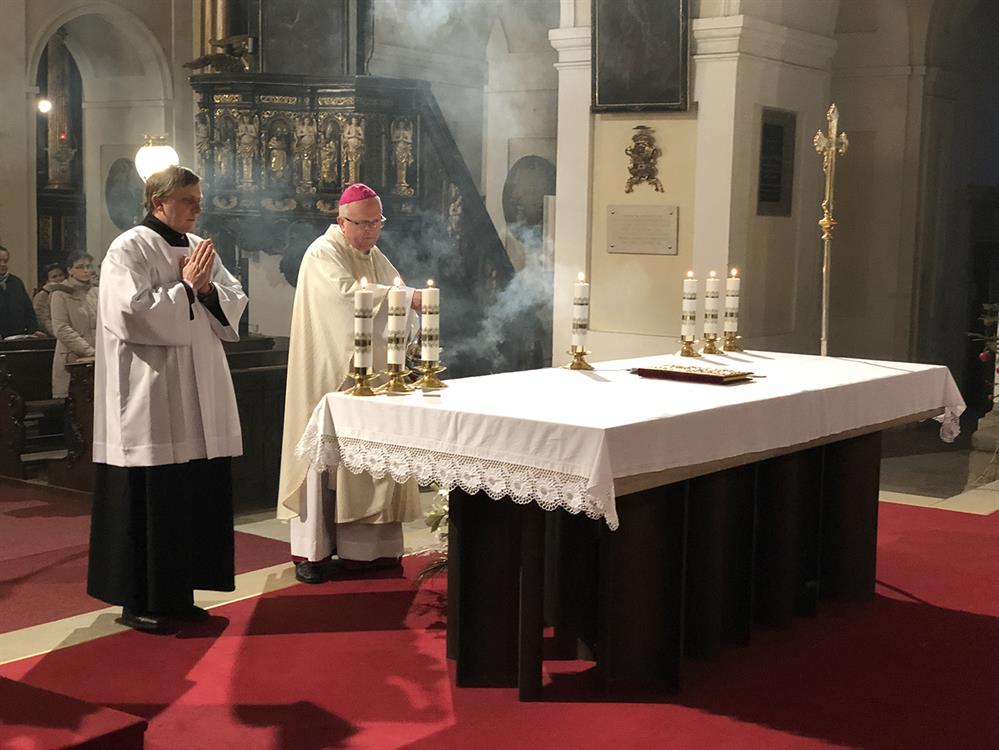 V neděli 31. prosince 2017 od 16 hodin sloužil biskup Mons. Jan Baxant spolu s kanovníky svatoštěpánské kapituly v litoměřické katedrále mši svatou na poděkování za uplynulý rok.