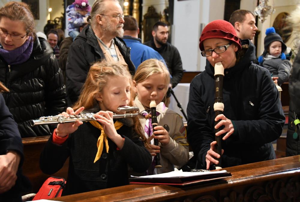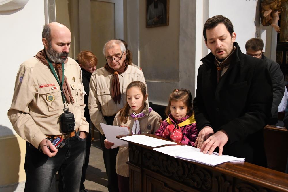 Tradiční vánoční setkání skautů a veřejnosti, žehnání Betlémského světla, probošt litoměřické katedrální kapituly, prelát Jiří Hladík O.Cr., 24. prosince 2017, katedrála sv. Štěpána, Litoměřice