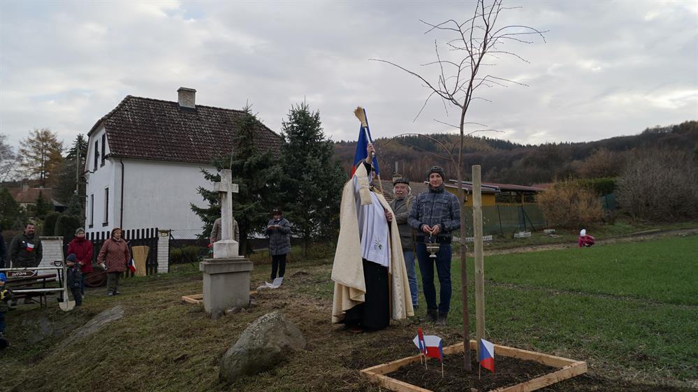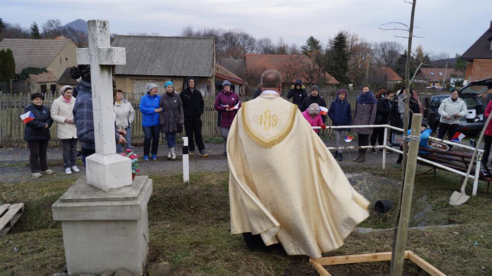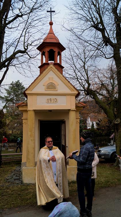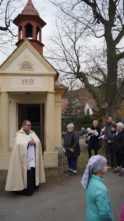 Slavnostní venkovní mše u kapličky a žehnání nových stromů, 18. listopad 2018, Boreč u Lovosic