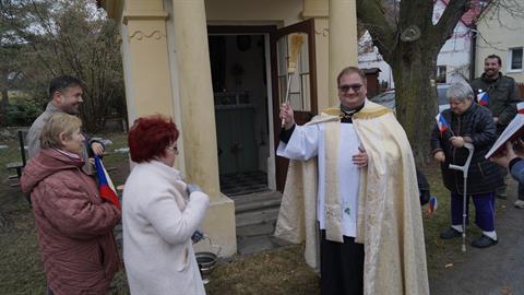 Žehnání kapličky a nových stromů v Borči
