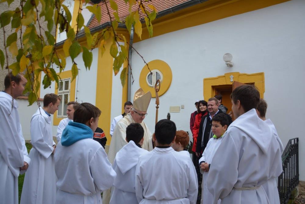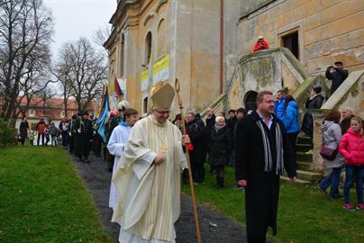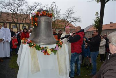 Svatomartinská poutní slavnost s žehnáním nového zvonu („Maria“), poutní mše svatá s litoměřickým biskupem Mons. Janem Baxantem a duchovním správcem farnosti P. Vilémem Markem Štěpánem O.Praem., 5. listopadu 2017, kostel sv. Martina a Navštívení Panny Marie, Liběšice u Žatce