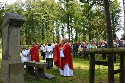 Žehnání obnovené křížové cesty na Annabergu u Lobendavy
