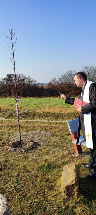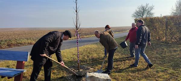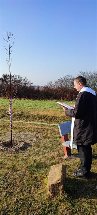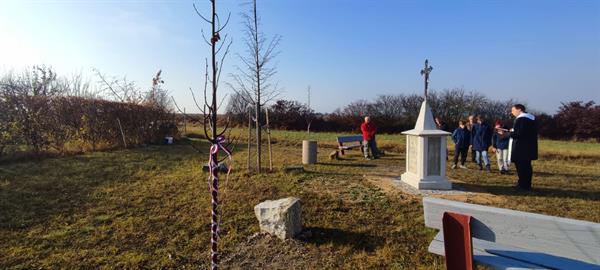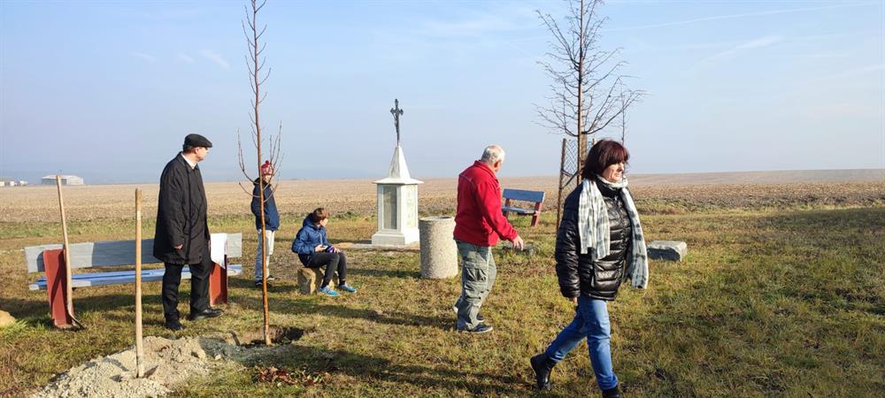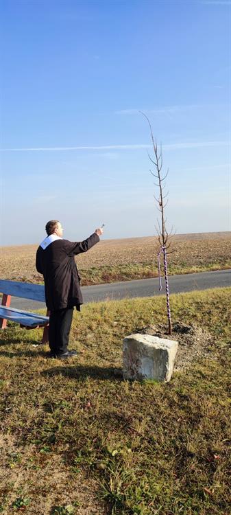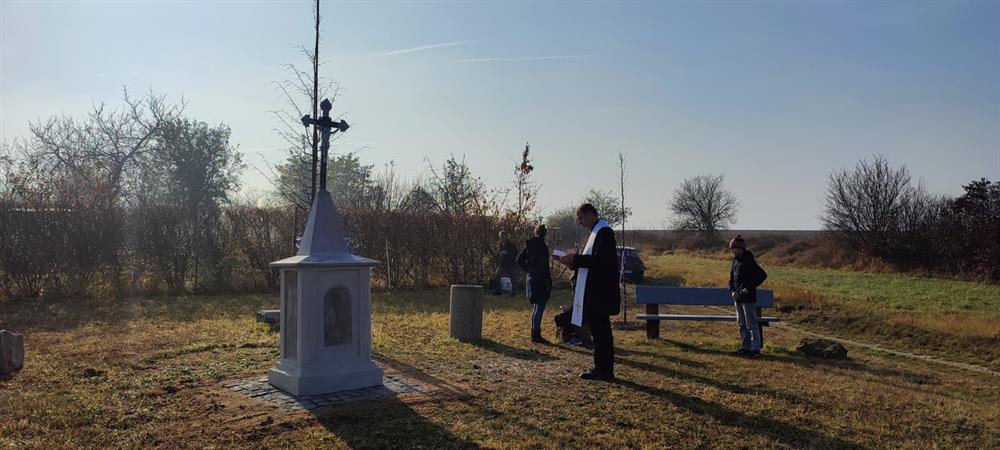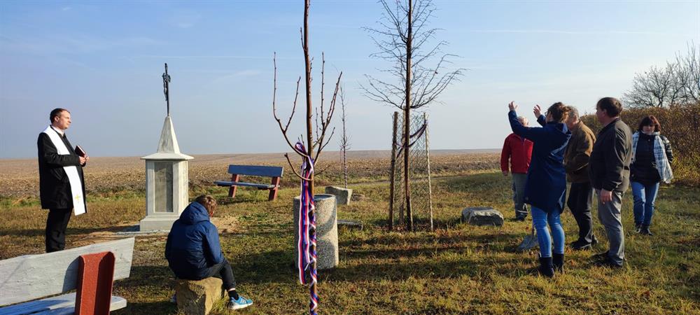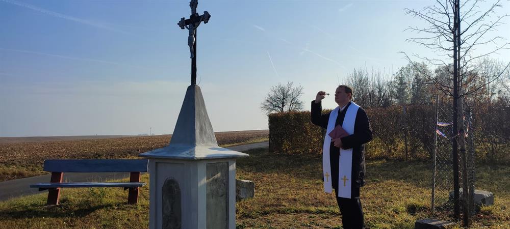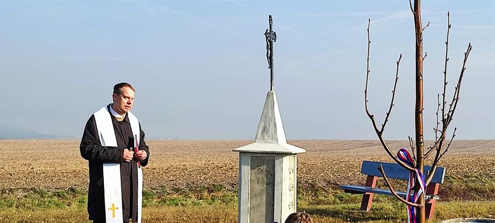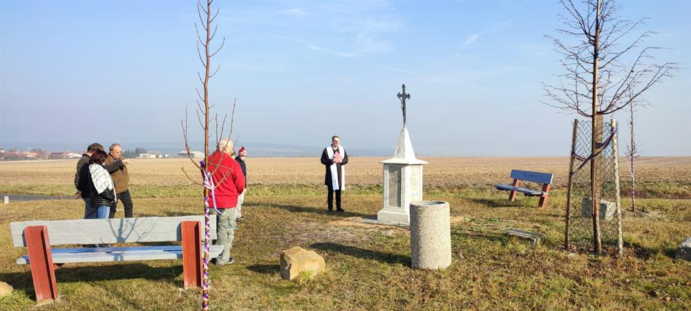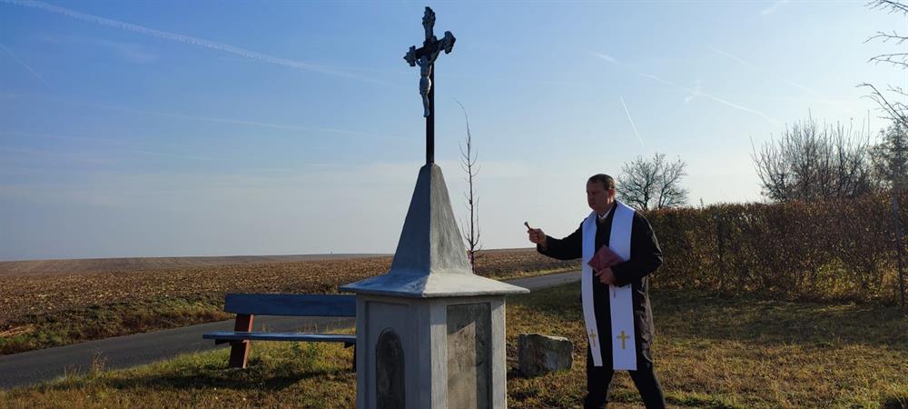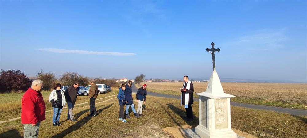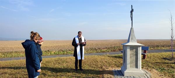Žehnání obnoveného kříže u cesty z Rohatců do Roudnice