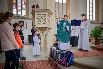 Žehnání školáků a školních pomůcek na začátku školního roku