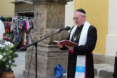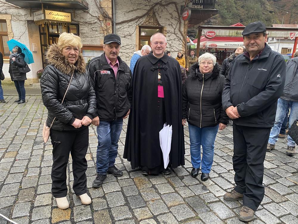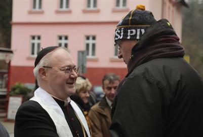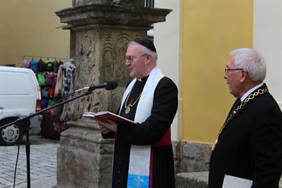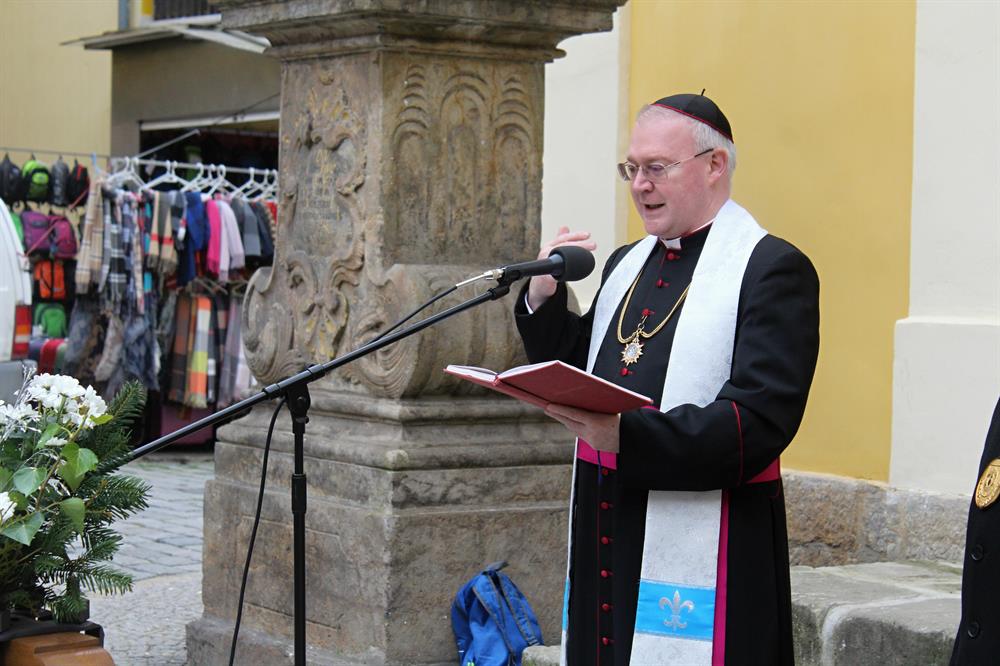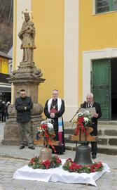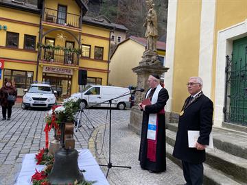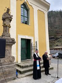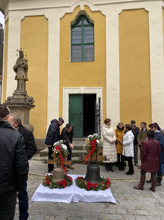 před kostelem sv. Jana Nepomuckého žehnání dvou kostelních zvonů - jednoho
