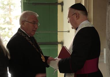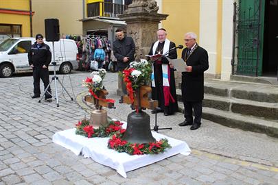kostela v den, kdy byly požehnány. V závěru starosta uvedl: „Budete moci