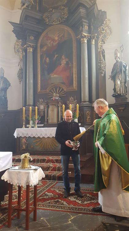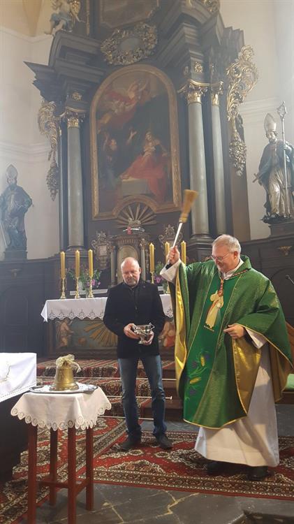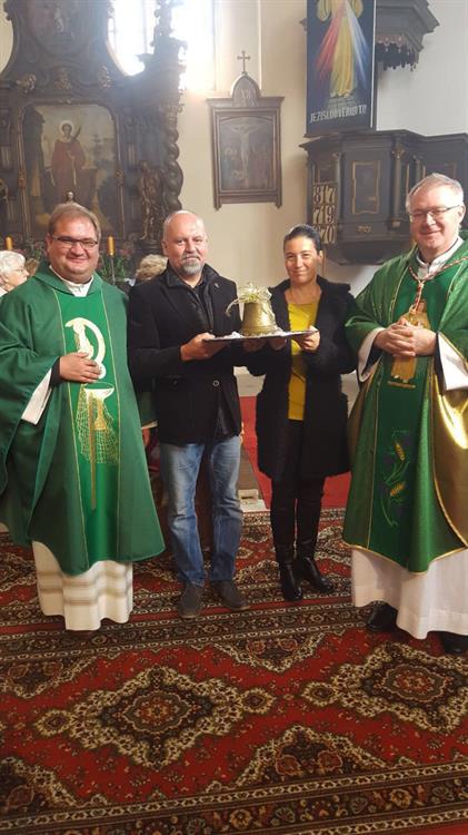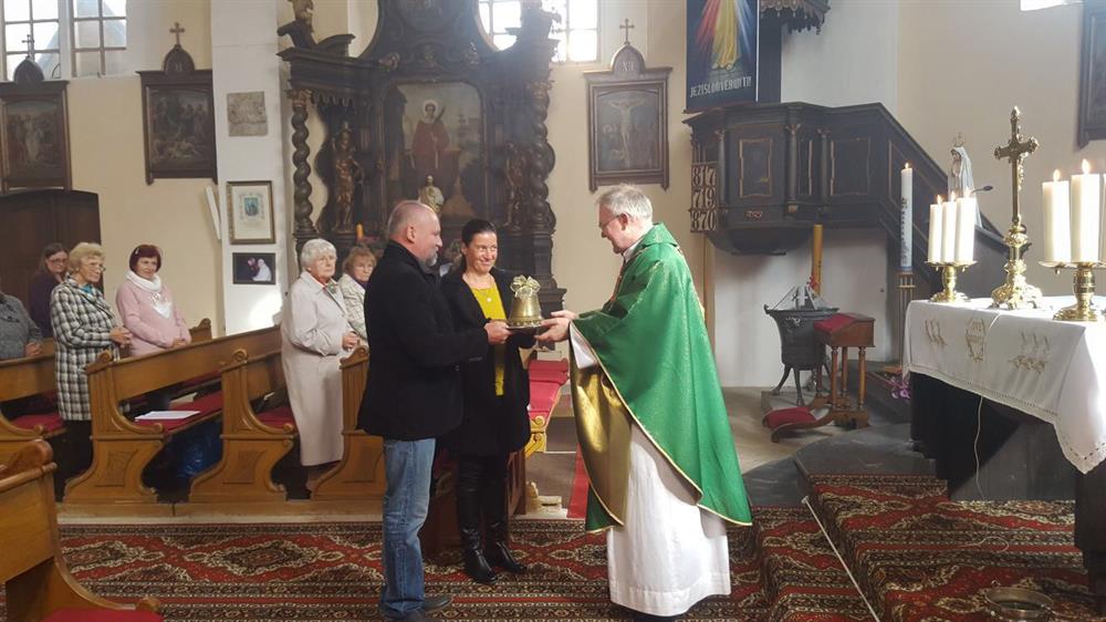 Žehnání zvonu pro kapli sv. Jana Nepomuckého v Děkovce